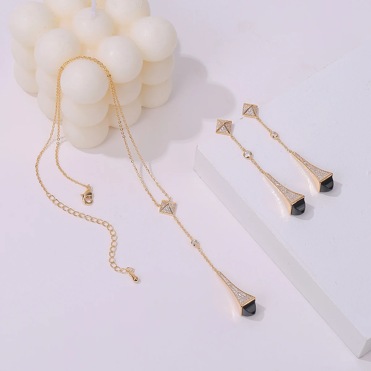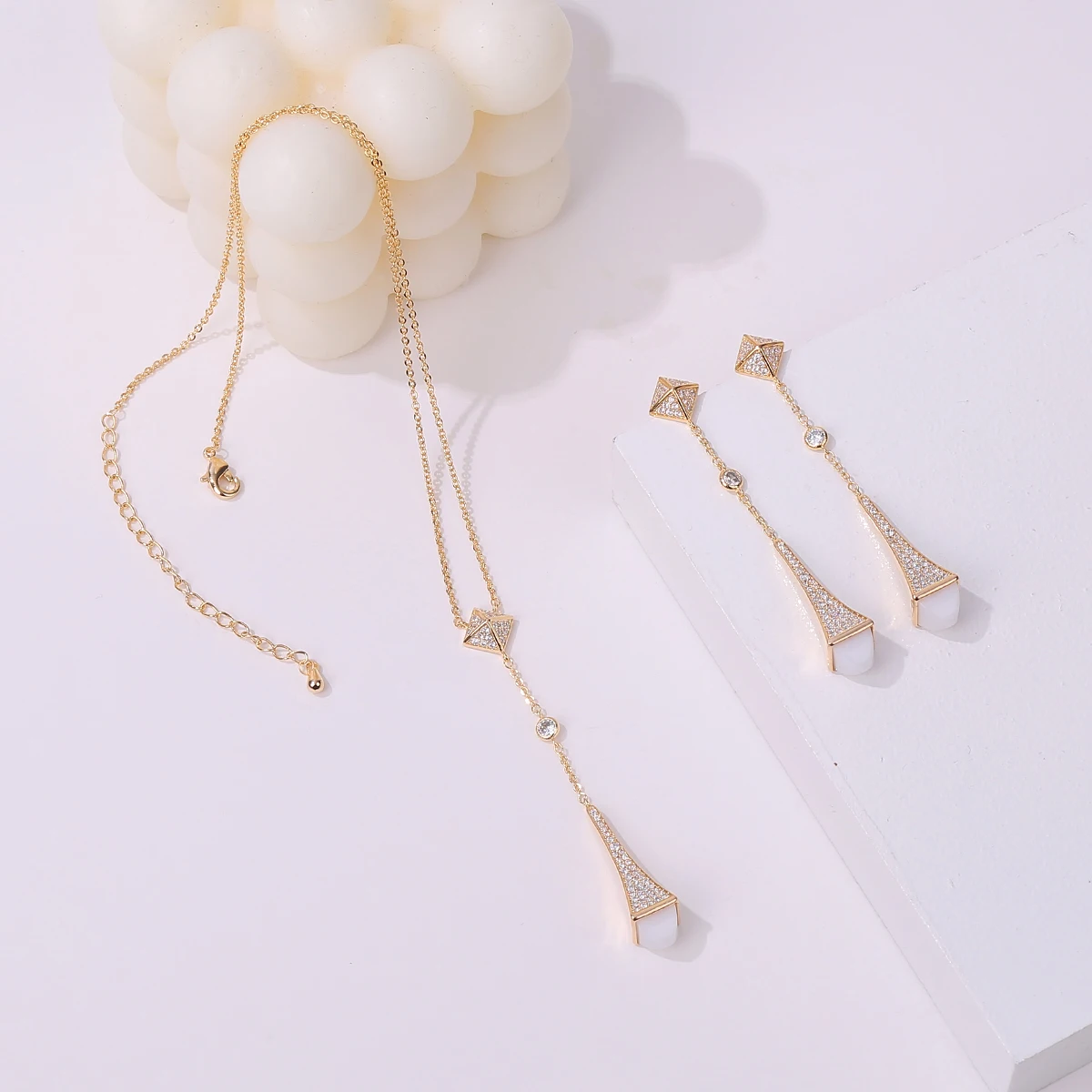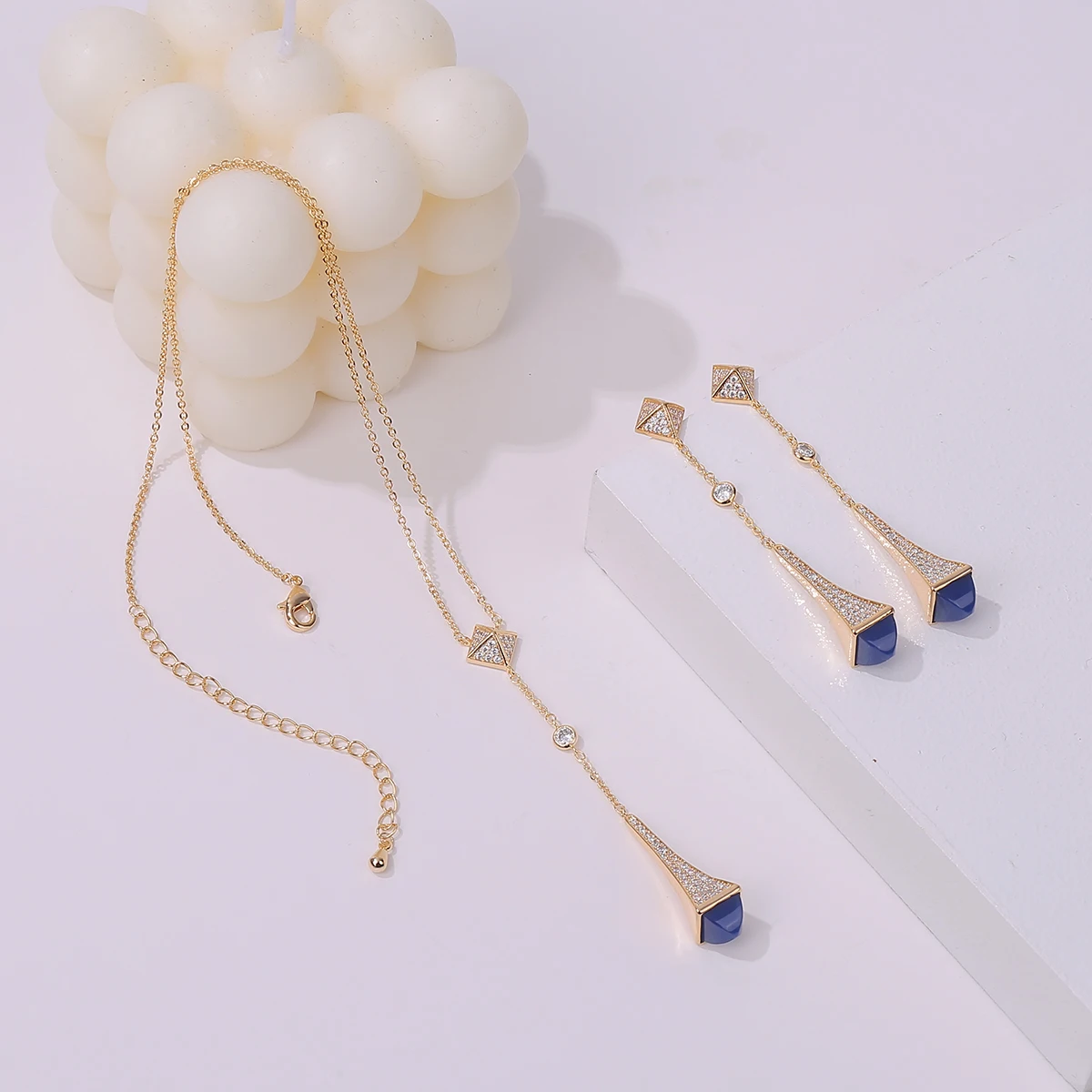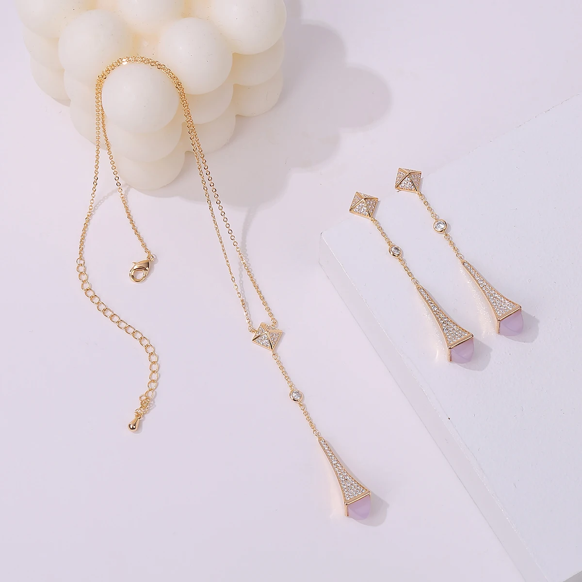 2021 Romatic Women's Fashion 2 Pcs Necklace & Earrings Set Caolorful stone Simple Design Gold Necklace Drop Earring Jewelry Set
